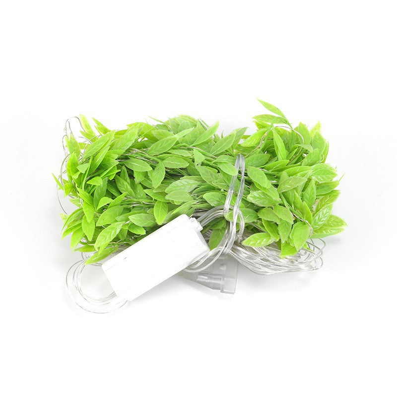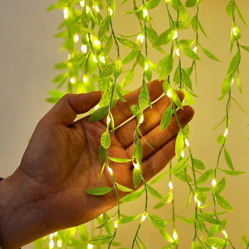Transforma tu espacio con nuestra cortina de hojas artificiales y luces led.