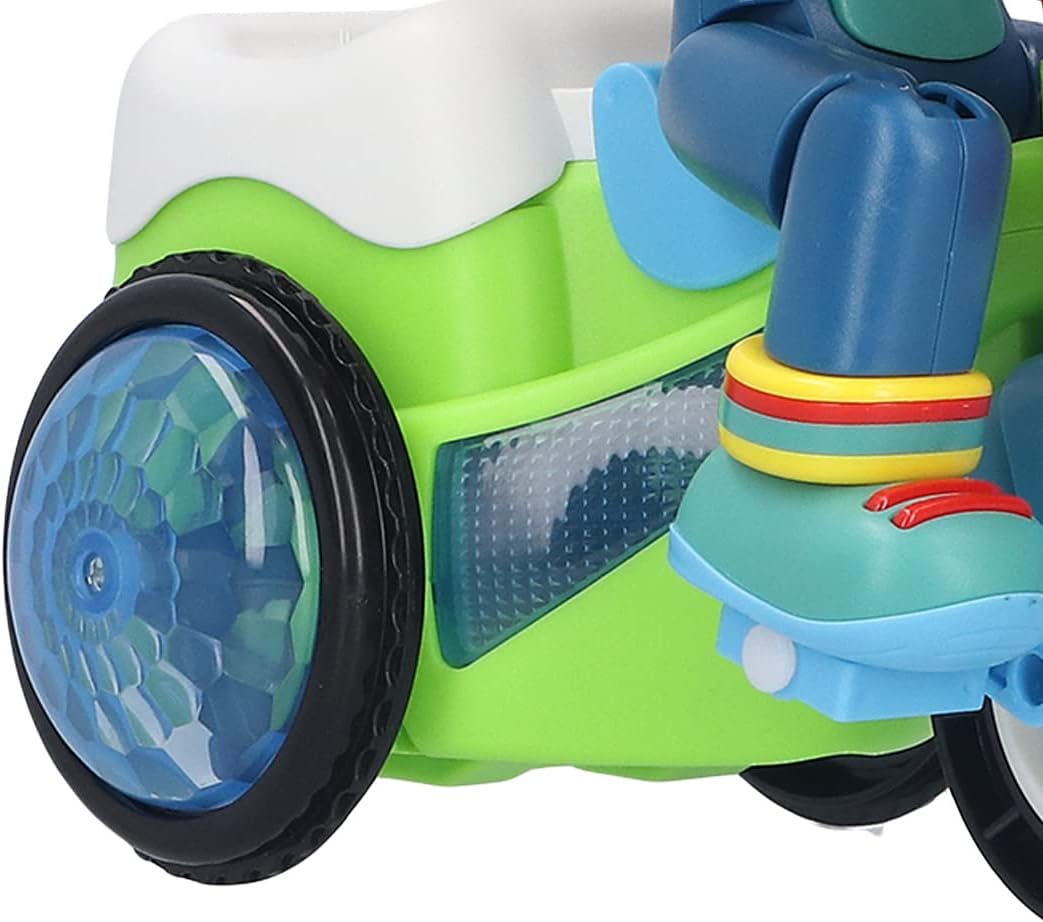 Activa el interruptor y deja que el niño en el triciclo realice acrobacias con una deslumbrante exhibición de luces y melodías: una extravagancia de entretenimiento para tu pequeño.