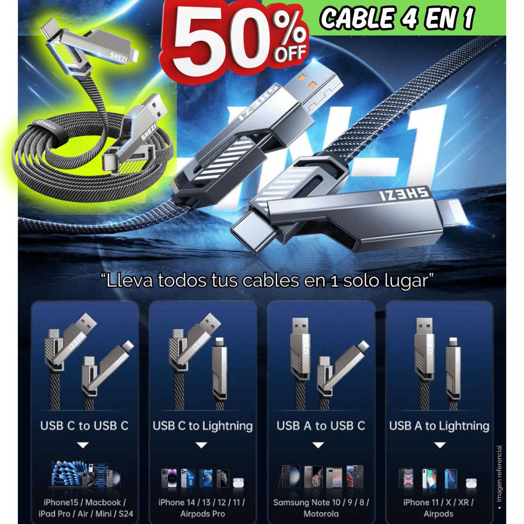 1 CABLE CONVERTIBLE MULTIFUNCIONAL (4 EN 1)- 50% DSCTO.