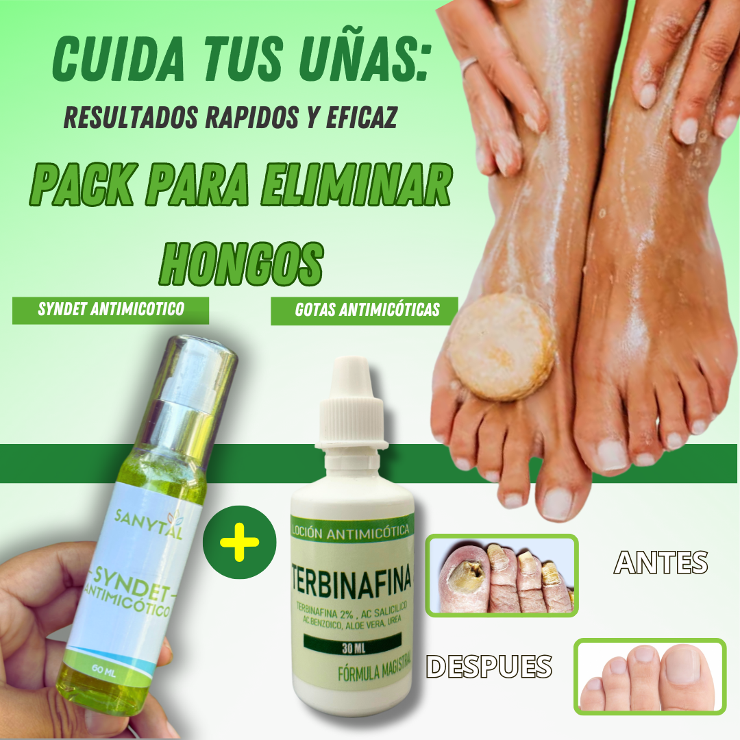 PACK ANTIMICOTICO (GOTAS DE TERBINAFINA + JABON ANTIMICOTICO (SYNDET) (ELIMINA HONGOS EN LAS UÑAS Y PIE DE ATLETA)- M0262