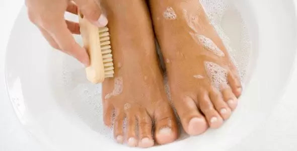 1. Remoja y lava la zona afectada con el jabón Syndet para limpiar y suavizar la uña.