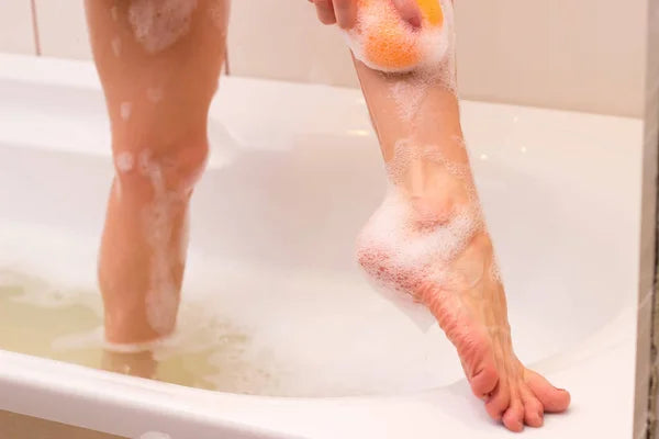 1. Remoja y lava la zona afectada con el jabón Syndet para limpiar y suavizar la uña.