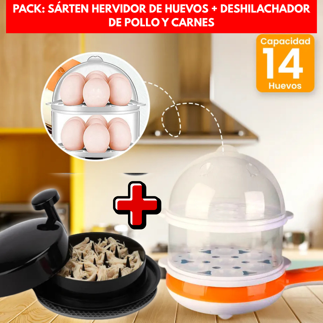 PACK DÚO MULTIFUNCIÓN: Cocedor de huevos multifuncion + Deshilachador - M0277